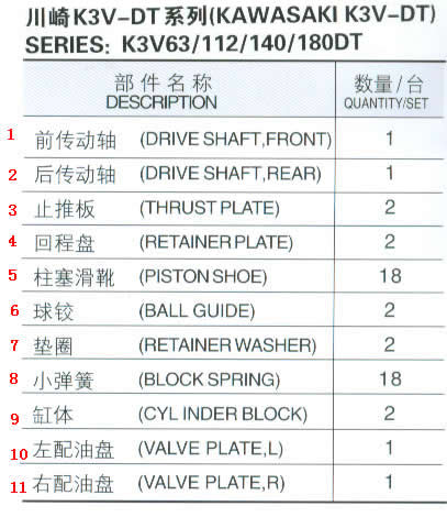 के 3 वी - डीटी कावासाकी हाइड्रोलिक पम्प पार्ट्स के लिए के 3 वी 63/112/140/180 डीटीविवरण: